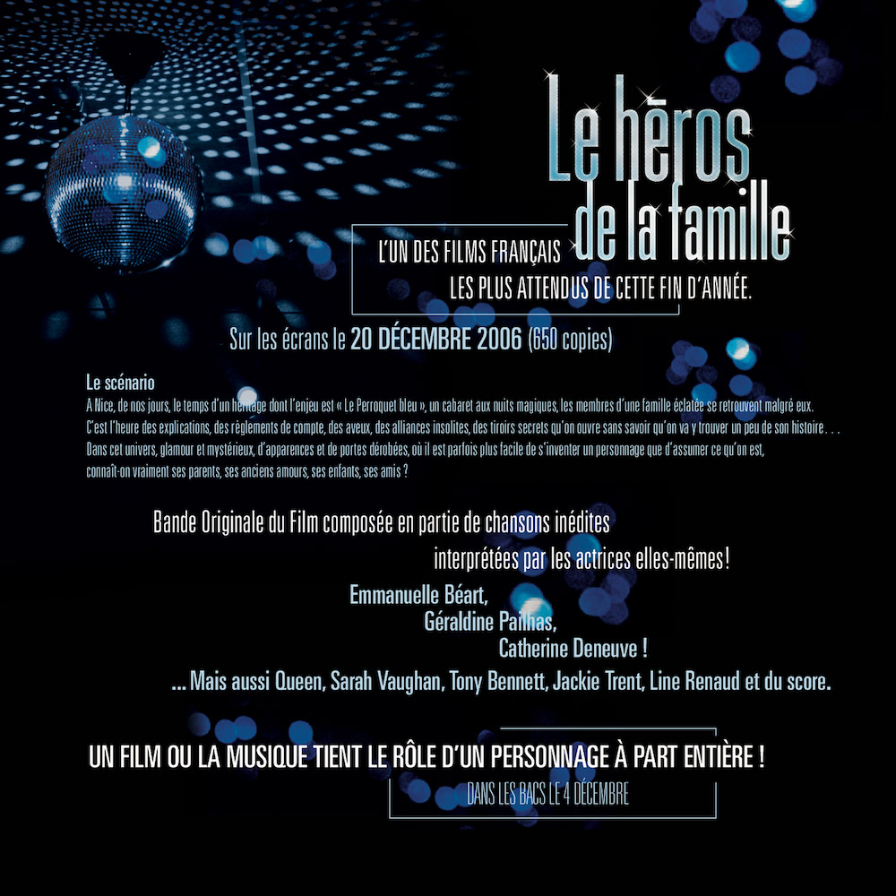 Press document for the french musical movie "Le Héros de la Famille", with Géraldine Pailhas et Emmanuelle Béart. Project manager : Steve Trameau Client : Sony Music